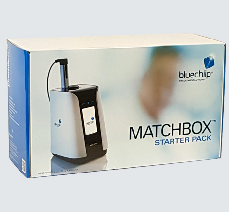Developer kits usually contain a Matchbox Reader, Stream software and a combination of Bluechiip-enabled consumables such as retrofit buttons for vials and CryoTags, as well as a tray of unpackaged Delta Tags.