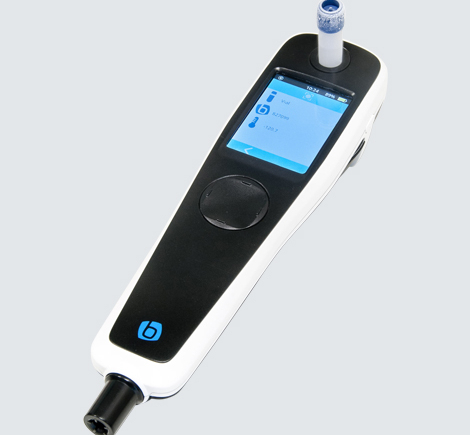 The Hand-Held Reader scans Bluechiip-enabled Cryovials, CryoTags, and 1D and 2D barcodes. Its large screen and buttons allow easy operation, even when the operator is wearing bulky Cryogloves.