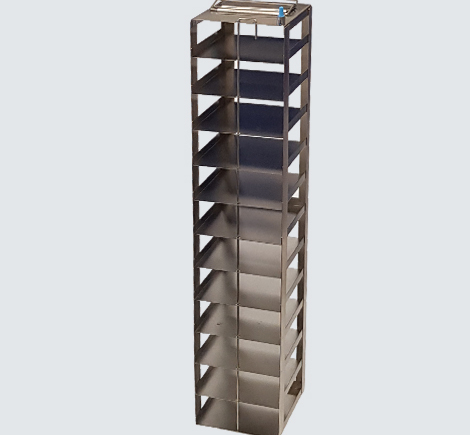 Bluechiip racks and towers are made from high-grade stainless steel for durability, strength and corrosion resistance. Bluechiip offers a six-bay rack designed to store six cassettes, and a 12-bay tower to store cryogenic boxes. Racks and towers are stand-alone products that can also be fitted with Bluechiip CryoTags that enable temperature and identification tracking to the sample level.